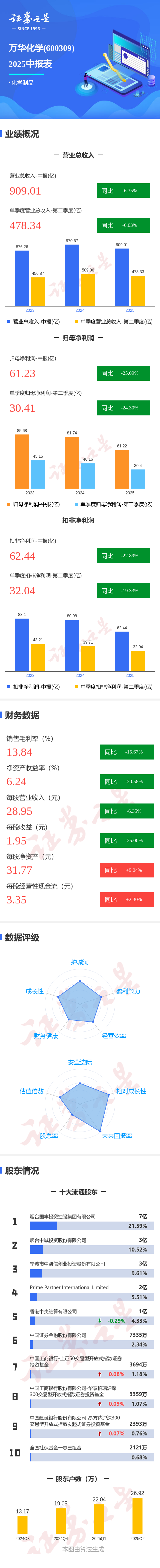 你的位置:北京快三号码推荐号码 > 新闻动态 > 图解万华化学中报: 第二季度单季净利润同比减24.30%